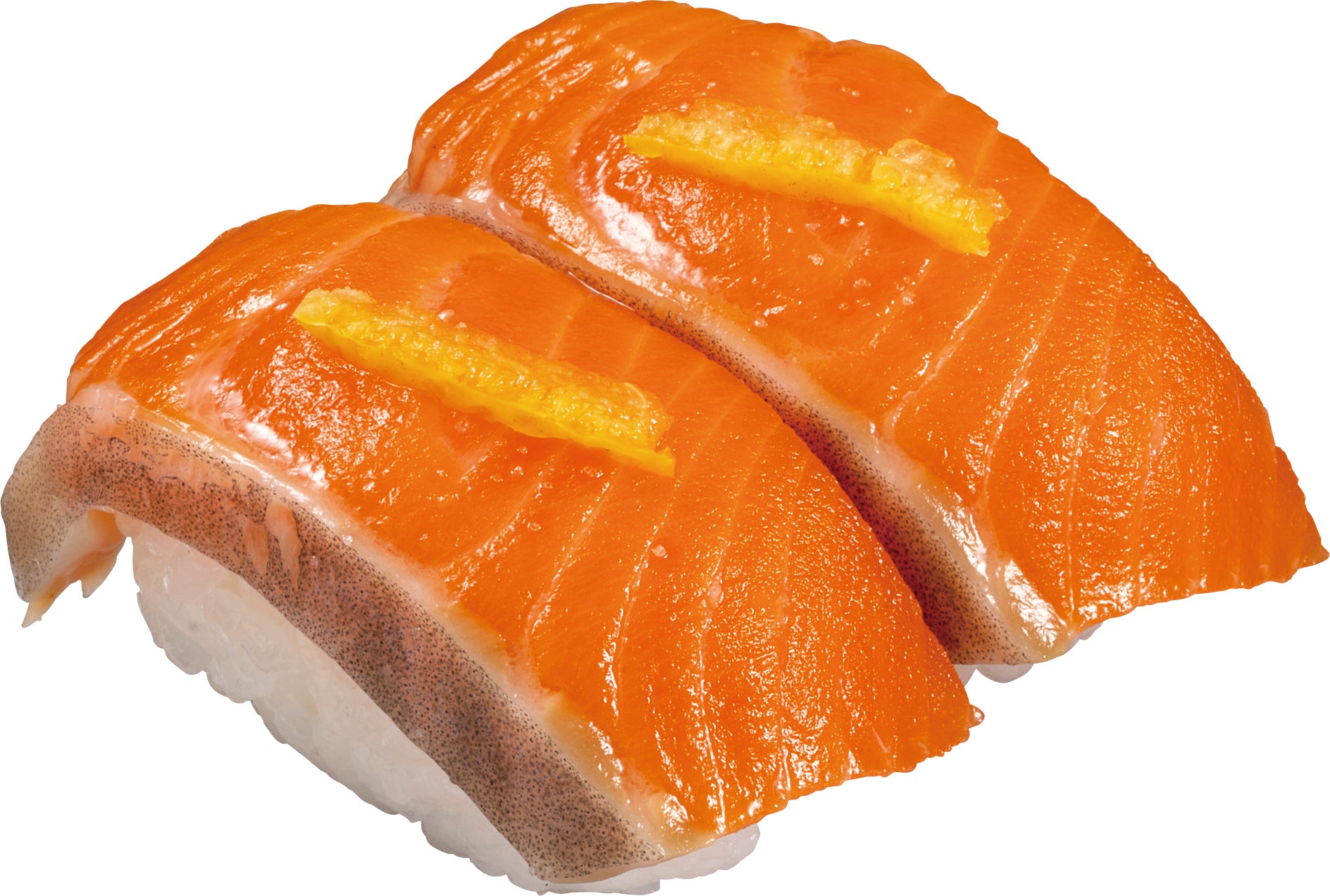 かっぱ寿司人気ネタの店内で切り付けたサーモンを柚子塩で!しっとり食感と脂の甘みが◎