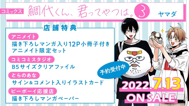 「鯛代くん、君ってやつは。」(著:ヤマダ)コミックス3巻が7月13日に発売&WEBサイン会開催決定!
