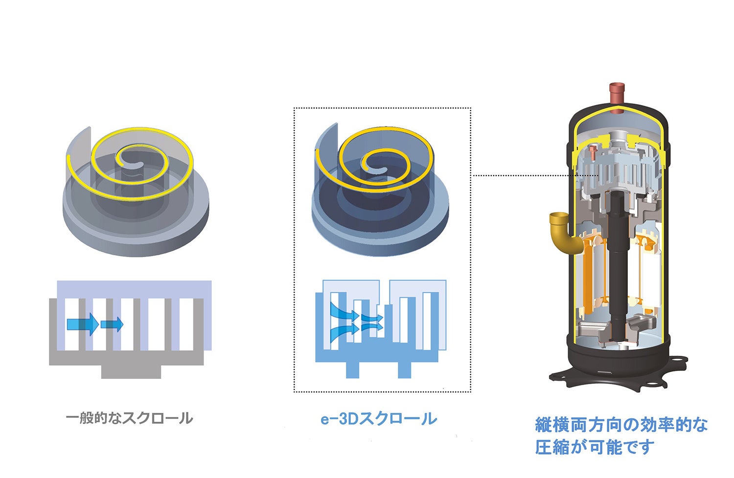 ◆ 「e-3Dスクロール」圧縮機などの独自技術で、50kWクラスで業界トップクラスのSCOP4.59を達成