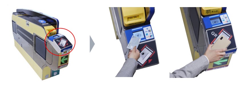 チケット購入後、スマートフォンに表示されたQRコードを対象改札機の専用リーダにかざすことでご利用いただけます。