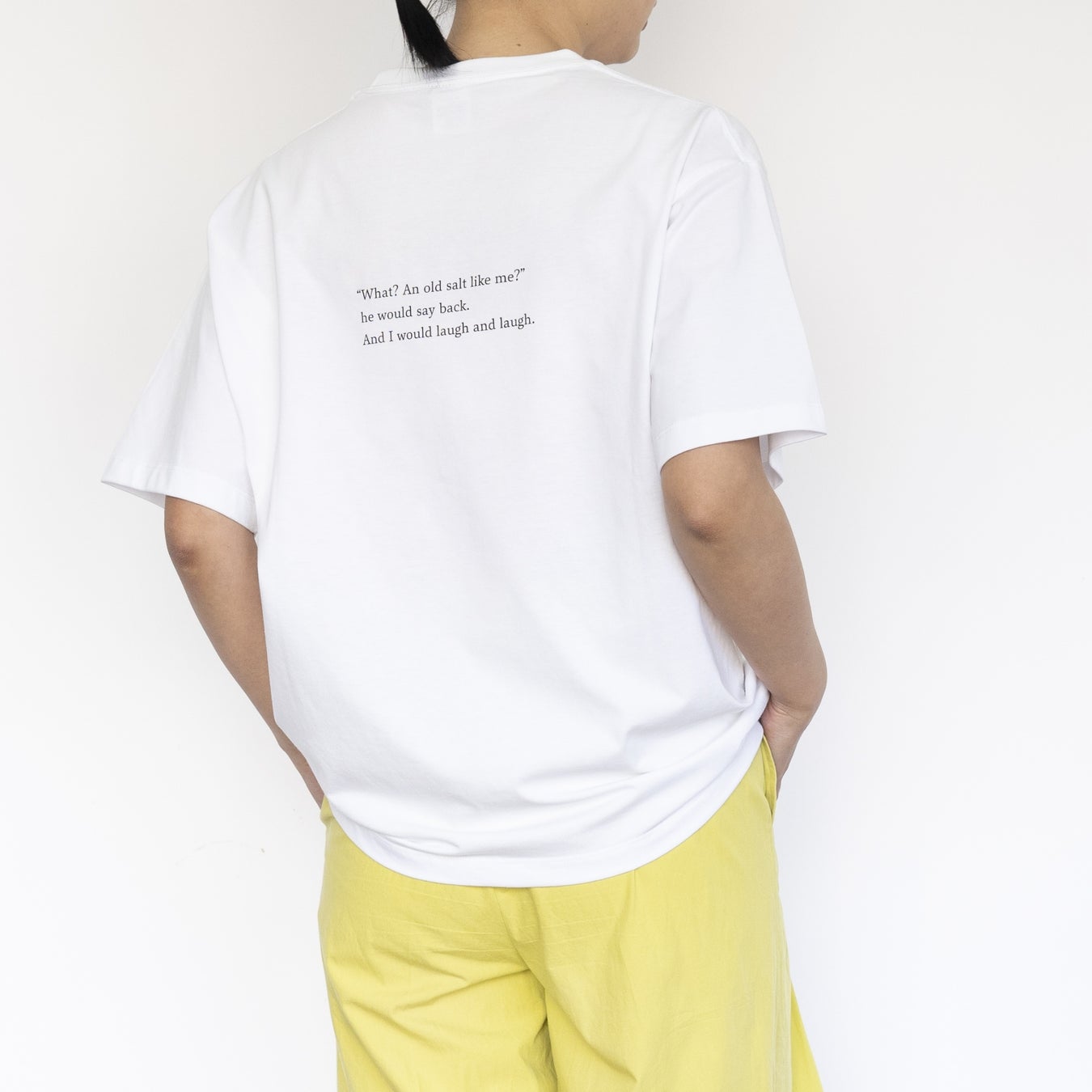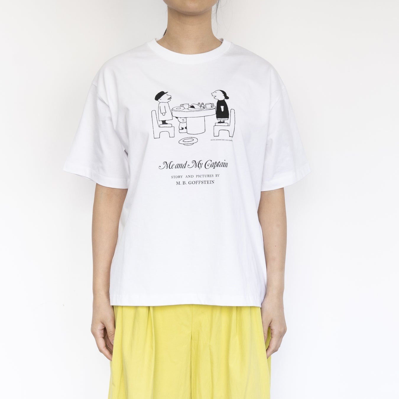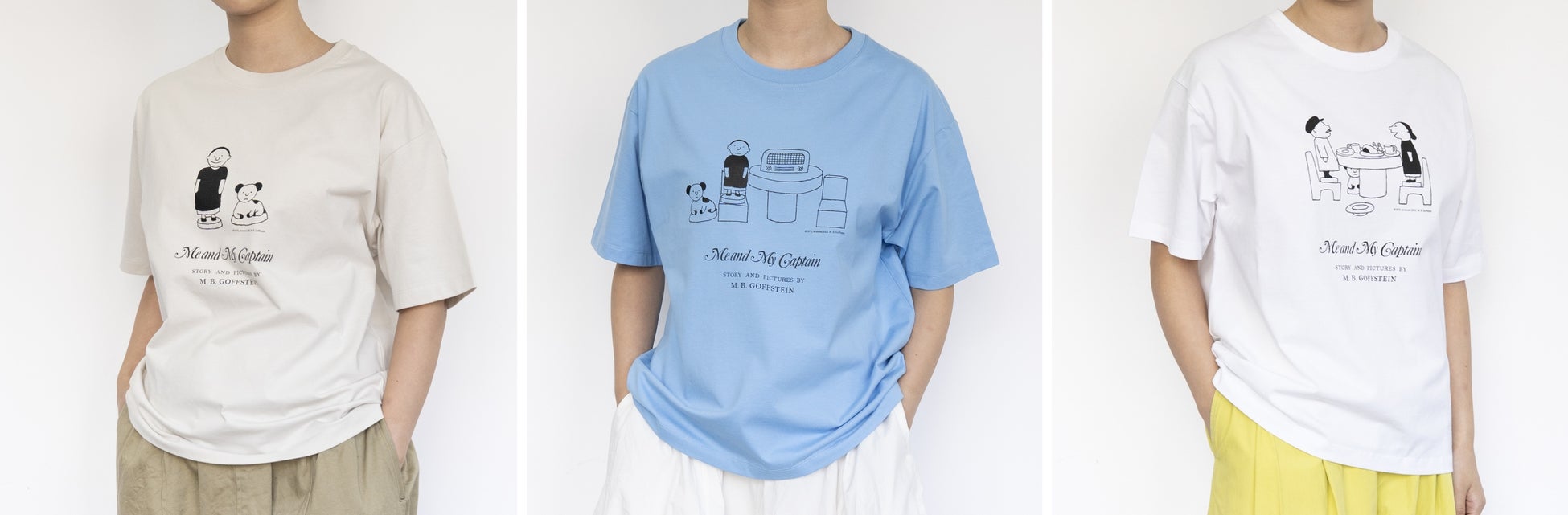 アメリカの絵本作家M. B. ゴフスタインの「私と私の船長さん」(原題:Me and My Captain)のワンシーンが、身幅にゆとりをもたせ、肩を落としたボックスシルエットのTシャツになりました。