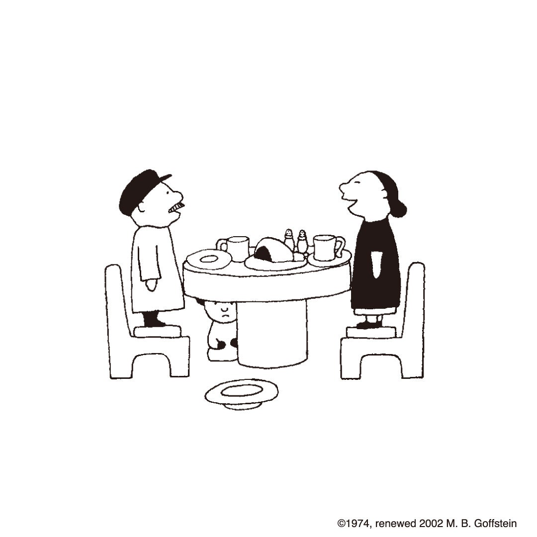 1940年、アメリカ、ミネソタ州セントポールに生まれ。ゴフスタインは幼少の頃、本というものがあまりに素晴らしいので、人間が作ったものとは思えず、神様がくれたものだと思っていた。そして人が書いたということを知って以来、本を書く人になりたいと思ってきた。本を読む体験は、本当の人生の体験と同じだと彼女は言う。スピリチュアルで哲学的なストーリー、児童書というカタチを借りた人生と幻想の作品世界。そして、この「かわいくって、たまらない」シンプルな線。平面に注がれる胸いっぱいの愛。