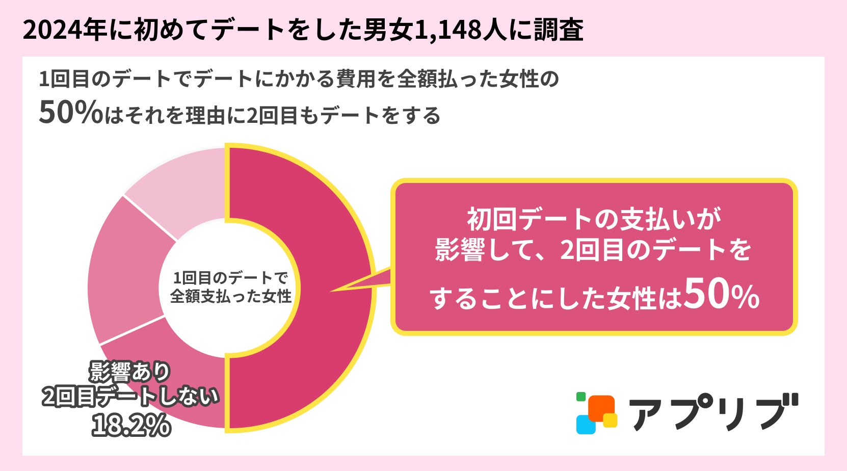 【2024年に初めてデートをした男女1,148人に調査】デート代を全額支払った女性の50%がそれを理由に2回目もデートをする