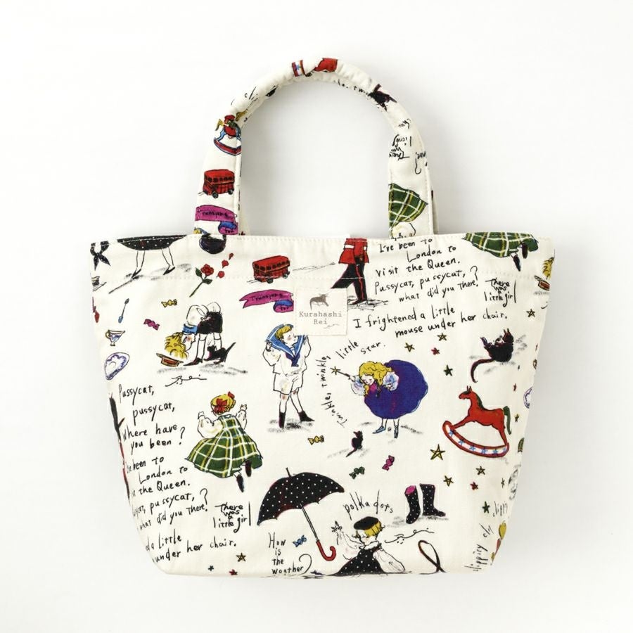 お弁当箱や飲み物のボトルなどが楽に入る大きさのトートバッグ。お散歩用などのプチバッグとしても使いやすいサイズです。
