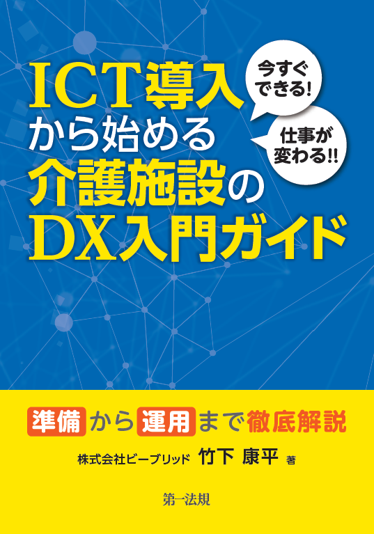 そのような介護事業者の皆さまのお悩みにお答えするため、弊社は『今すぐできる!仕事が変わる!!ICT導入から始める介護施設のDX入門ガイド―準備から運用まで徹底解説―』を2023年7月中旬に発刊します。