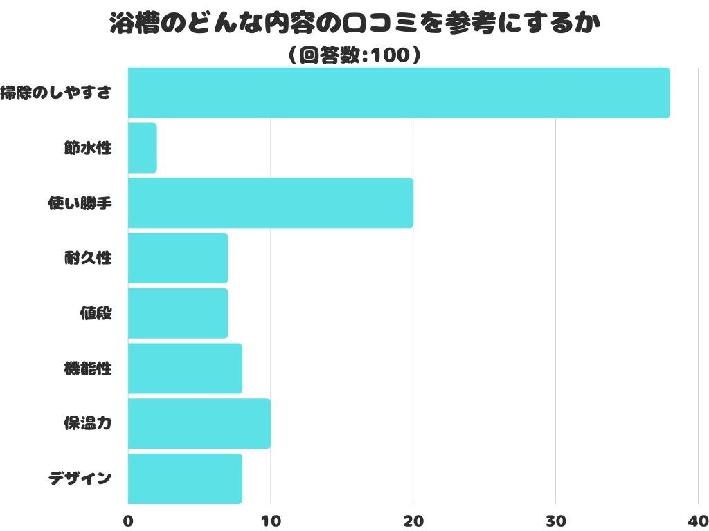 浴槽のどんな内容の口コミを参考にするかをアンケートにて調査したところ、1位は「掃除のしやすさ」でした。
