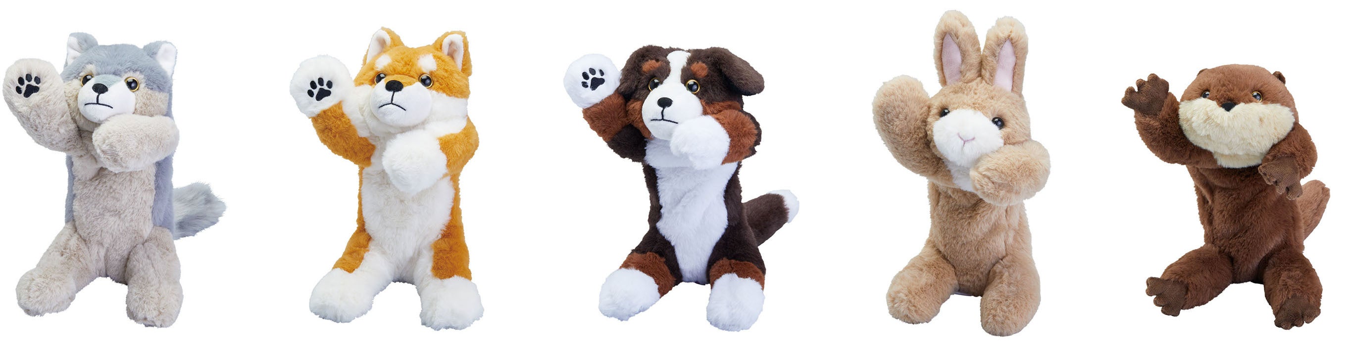 それぞれの動物に合わせて手や尻尾の形を変えたこだわりのデザインです。また、顔の横側と手の一部を縫い合わせたことで、どのようなポーズでもしっかりと顔が正面を向くので、可愛いポージングにで