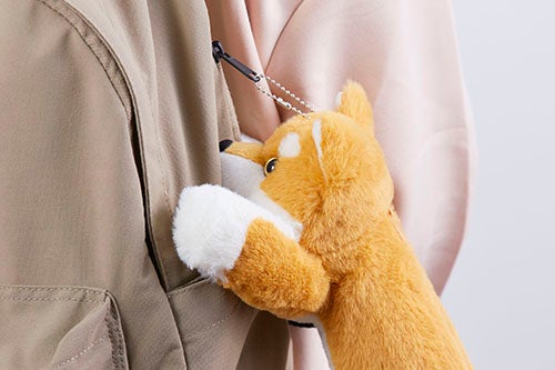 頭部にボールチェーンが付属しているので、スクールバッグやリュックに付けて一緒にお出かけできます。