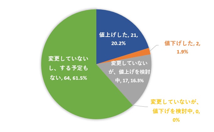 ▼1年以内に「お通し代」の価格変更をしましたか?(N=104)