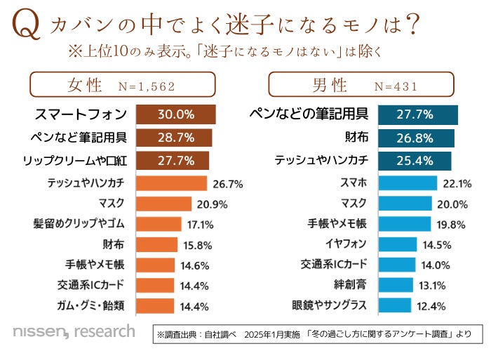 今回のアンケートでは、カバンの中で、どこにいったのか分からなくなってしまう持ち物について調査しました。