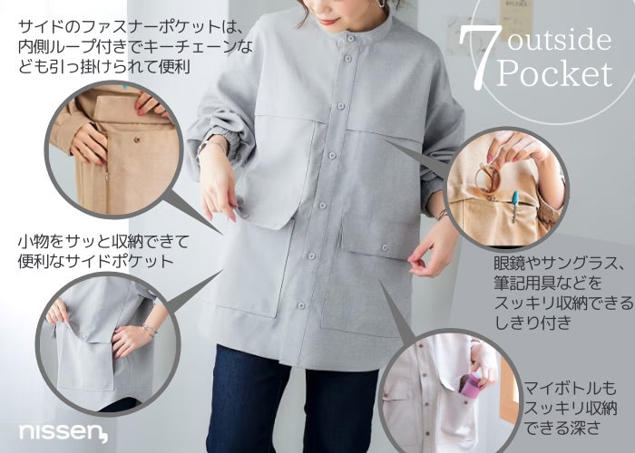 合計11個というポケット数は、ニッセンレディースファッションの『多ポケット』シリーズでは最多となります。