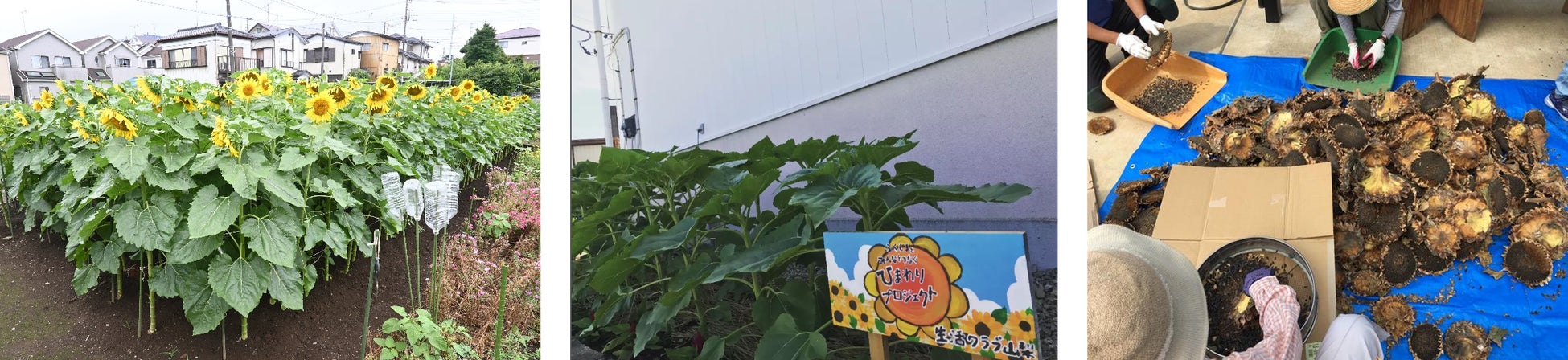 福島県のNPO法人シャロームが実施する全国各地の各家庭で食用ひまわりを育てて収穫した種を福島へ送り、障がいのある人たちがひまわり油・ひまわりせんべいなどの加工品をつくることで地域の復興支援に役立てる取組みです。以前は一部地域の生活クラブで協力してきたものを今年は全体化。結果、生活クラブ全体で約3万4千粒のひまわりの種を配布しました。栽培中の写真投稿数は1,094件でした。