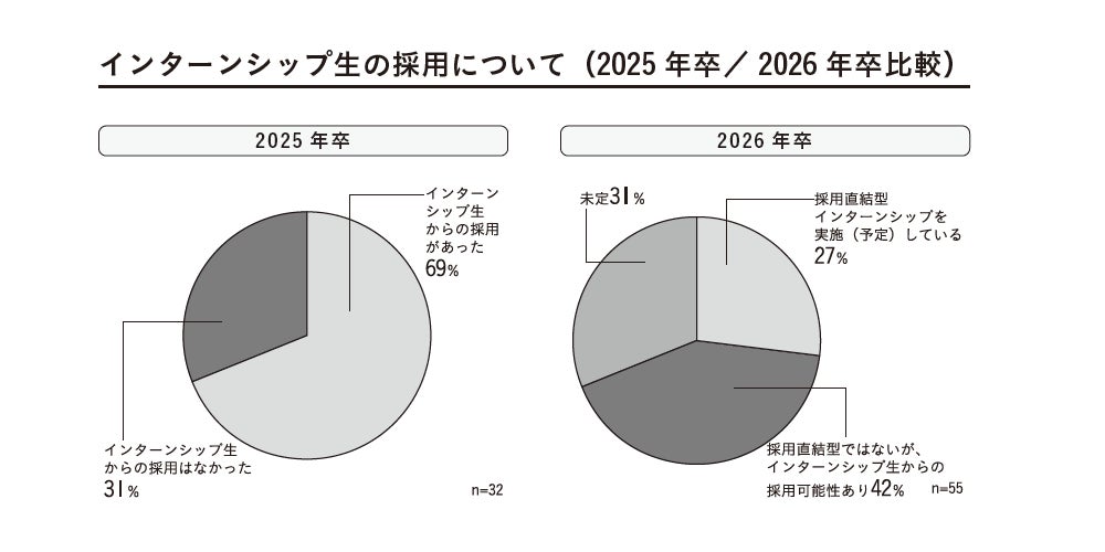 インターンシップ経由の採用が69%に。26卒も傾向続き新卒採用の新基準に