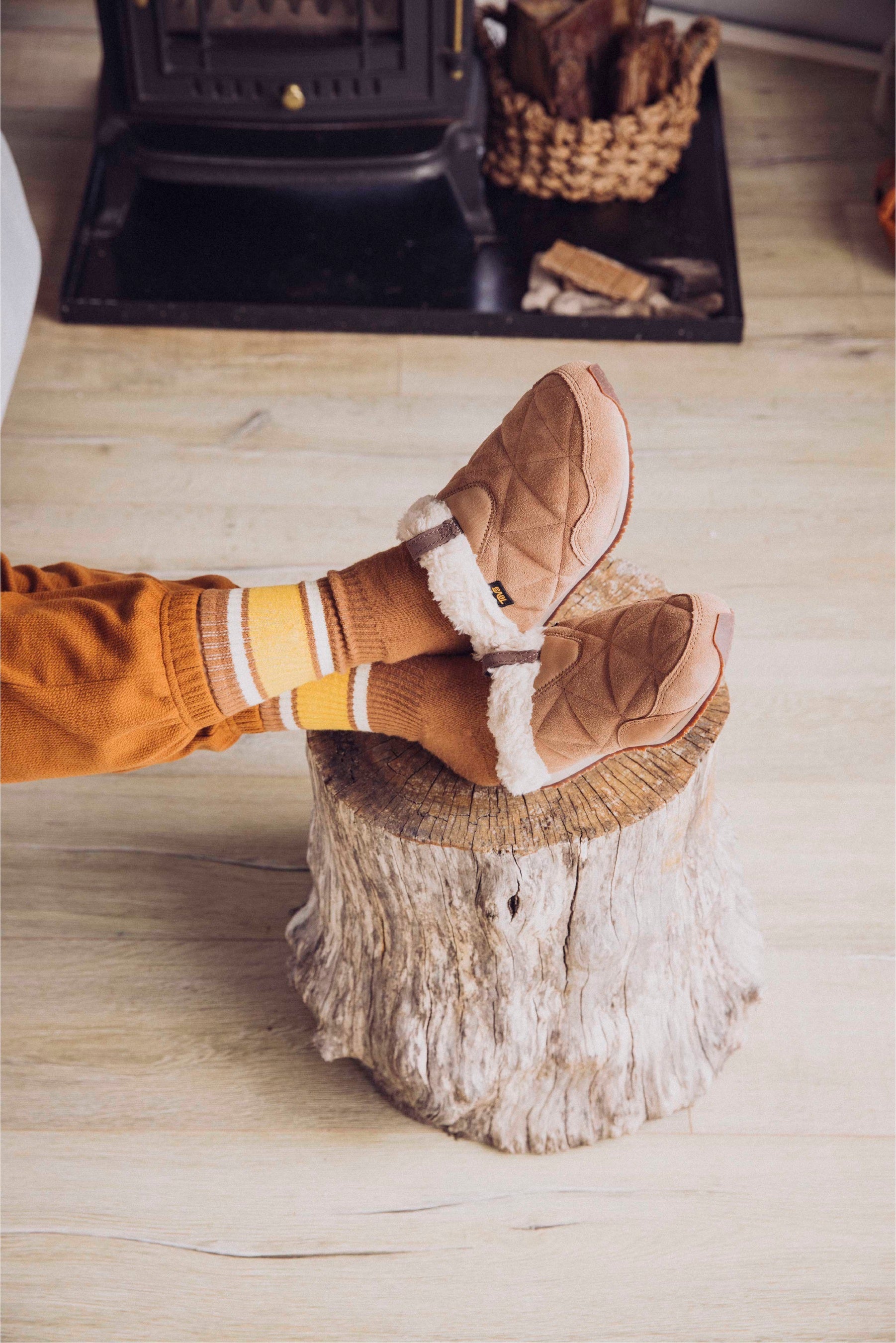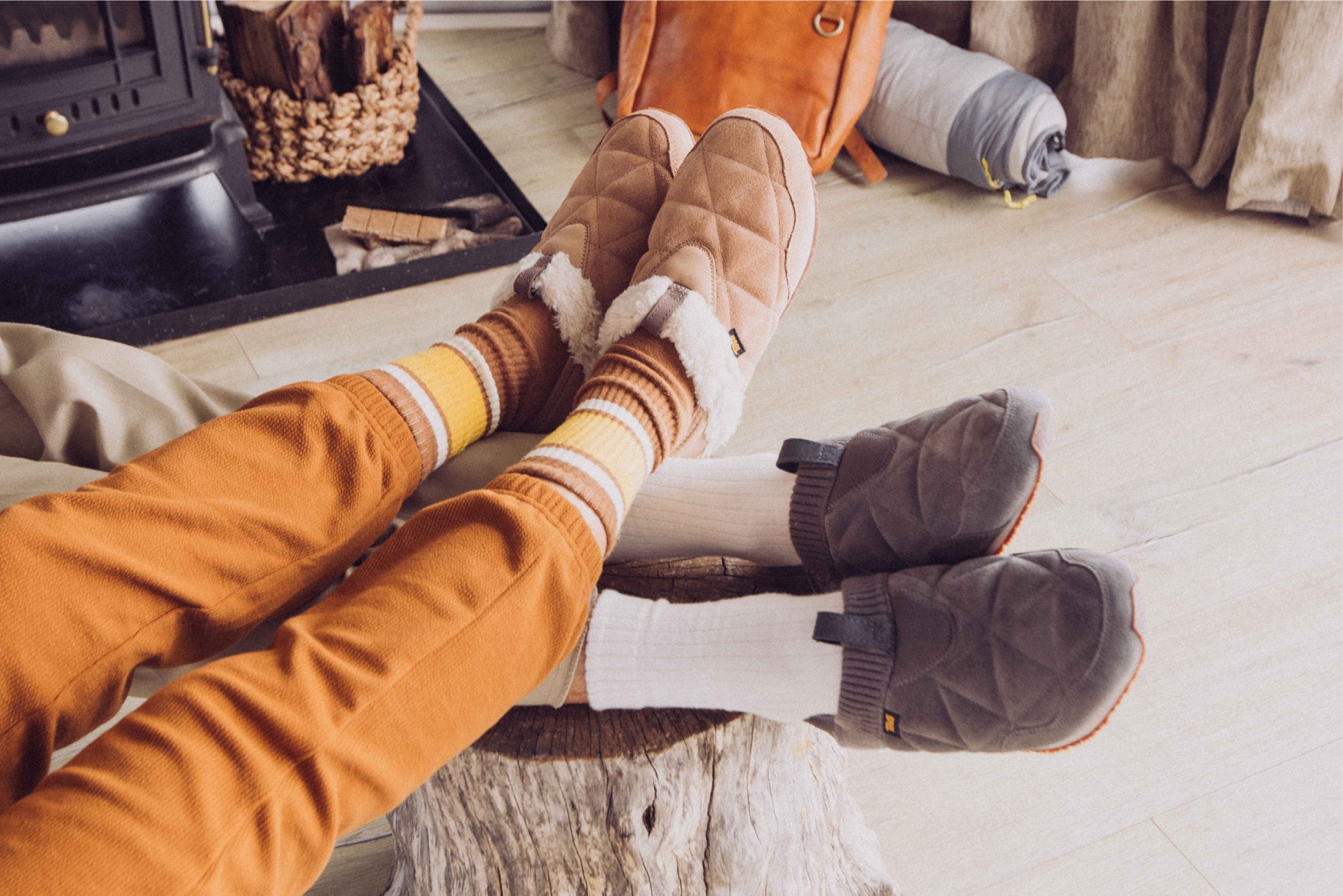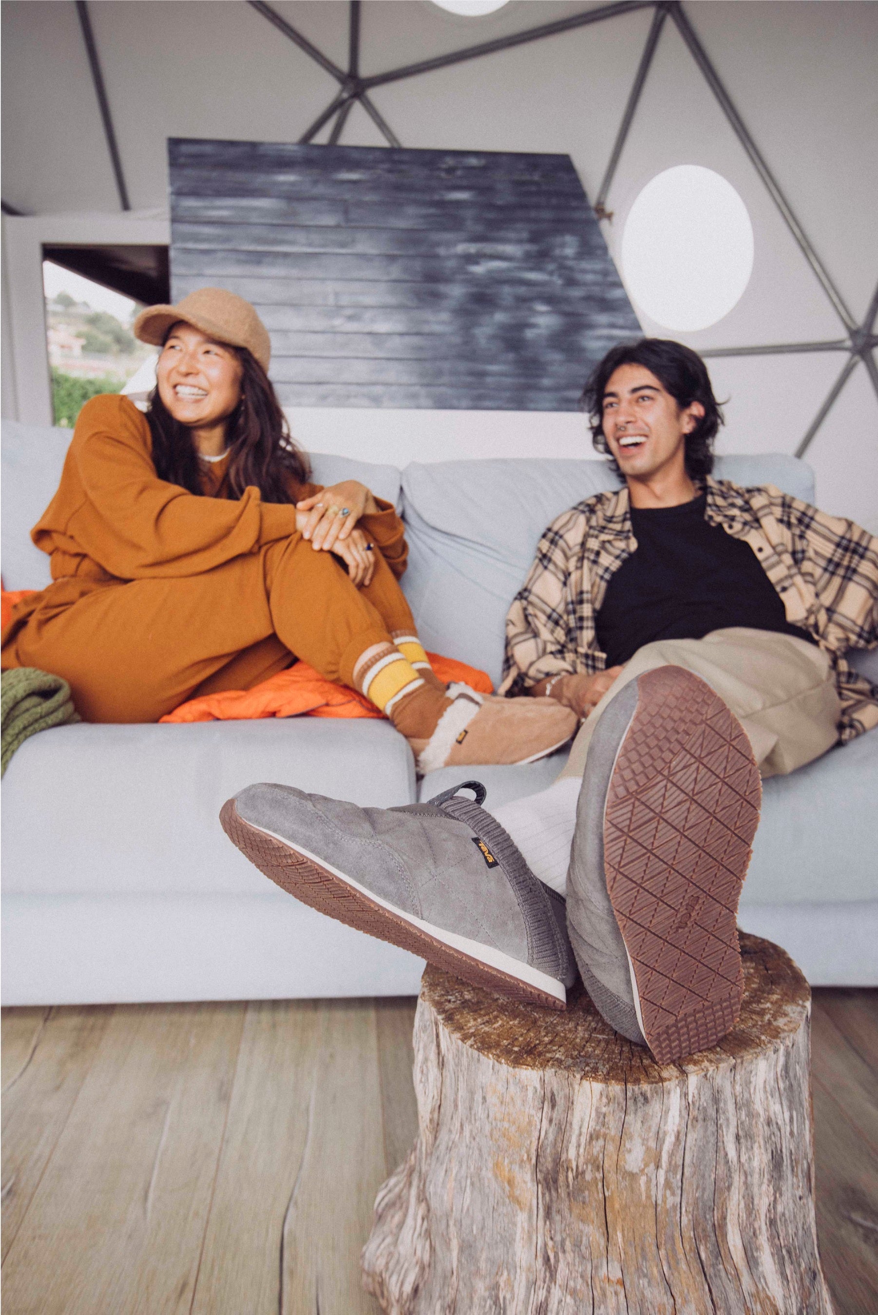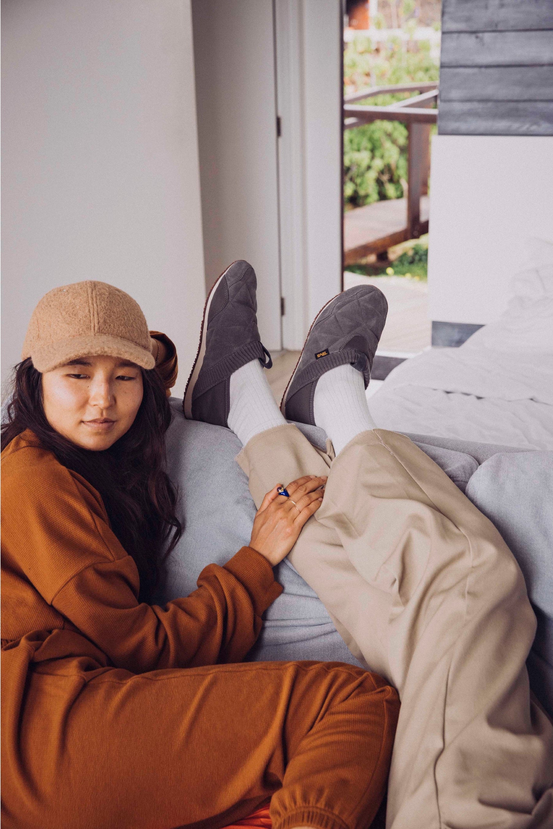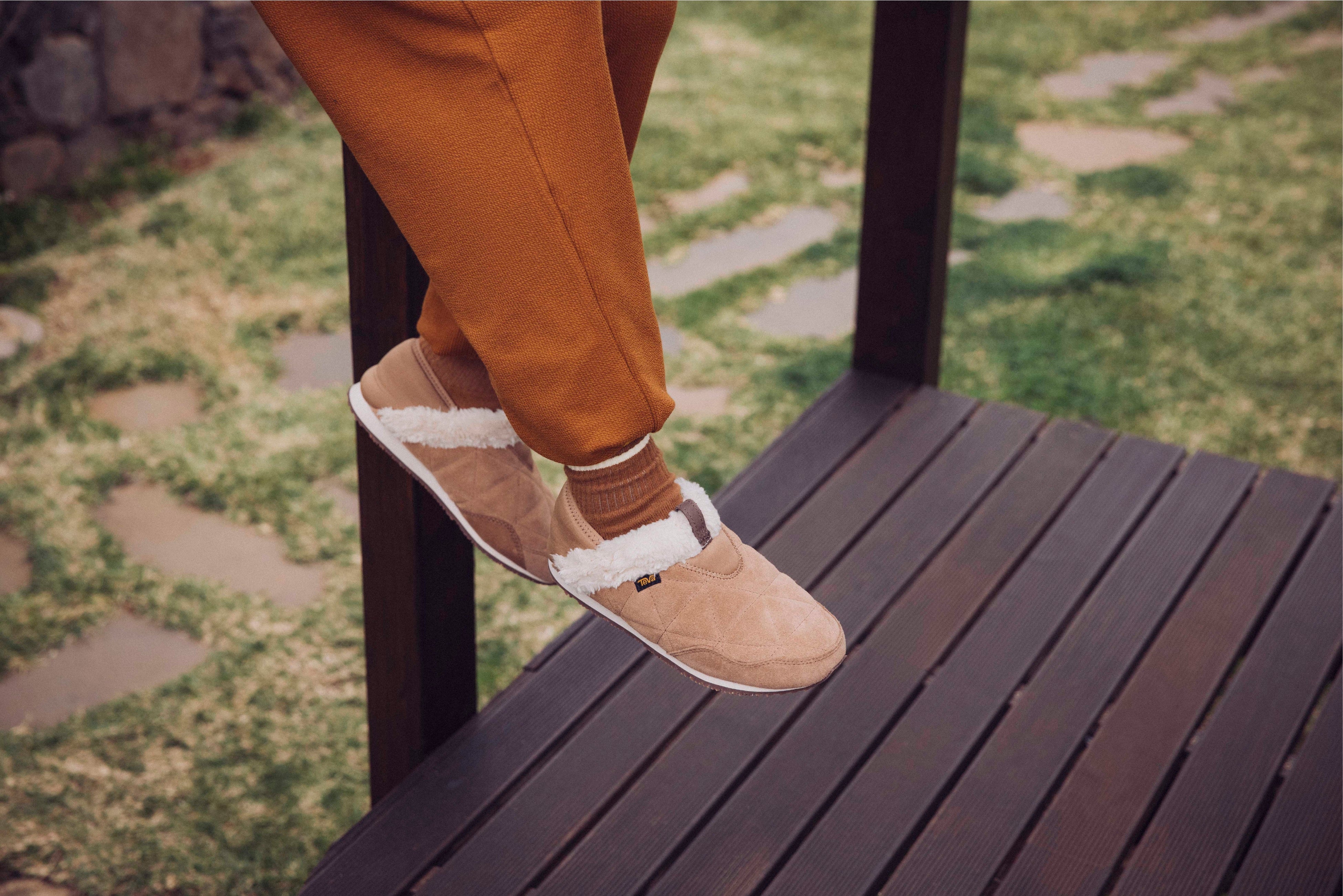 「REEMBER PLUSHED」は、撥水加工を施したスエードアッパーで、テンセル100%のふかふかのフェイクムートンをライニングに採用したスリッポンシューズです。ウィメンズモデルは履き口にもフェイクムートンを配し、見た目も暖かなデザインです。メンズモデルの履き口には再生ポリエステルのリブニットを採用。Teva公式サイト、全国の取り扱い店舗にて好評発売中です。