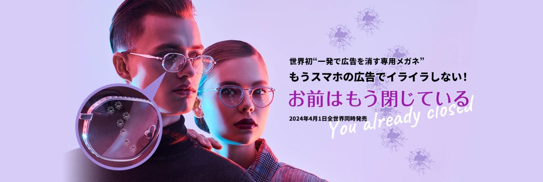 高齢化するオタクに寄り添うインターネットサービスプロバイダーのインターリンクは、スマートフォンを使う老若男女に向けて、一発で広告を消すことしかできないメガネ「お前はもう閉じている」を4月1日より発売しました。