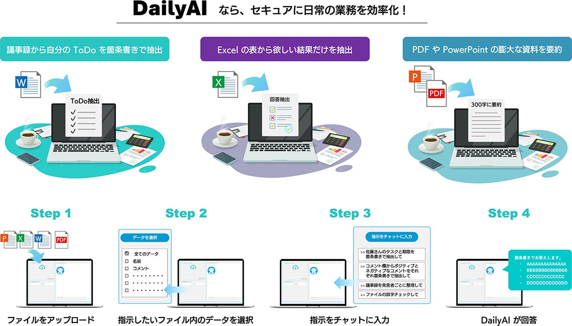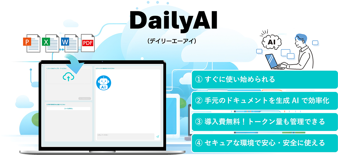 DailyAIは今後もさまざまな機能拡張をしていき、あらゆるビジネスシーンに必要な機能を兼ね備えた生成AIサービスとして、お客様の生産性向上に貢献してまいります。