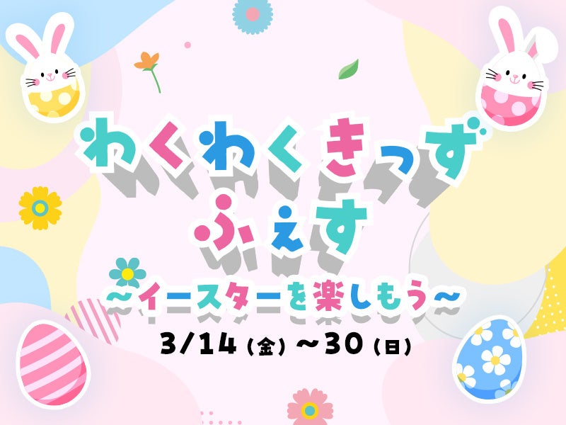 期間中にお買い上げのレシートを4枚(4店舗分)、インフォメーションセンターに提示するとお買い物券などが当たる抽選会(3/1(土)~31(月))や、エッグハントなどのイースターキャンペーン、「Lego®」のワークショップなど、キッズイベントが満載の「わくわくきっずふぇす~イースターを楽しもう~」(3/14(金)~30(日))を開催。