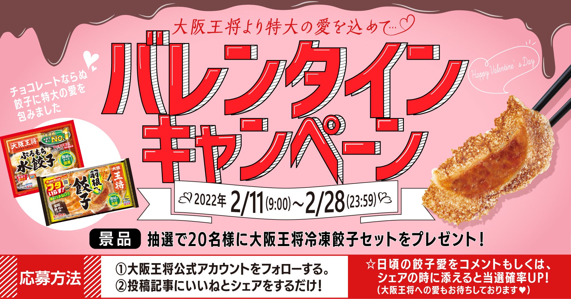 抽選で20名様に大阪王将 冷凍餃子をプレゼント!Twitter、Instagram同時開催『大阪王将より特大の愛を込めて…バレンタインキャンペーン』2月11日(金)より開催!