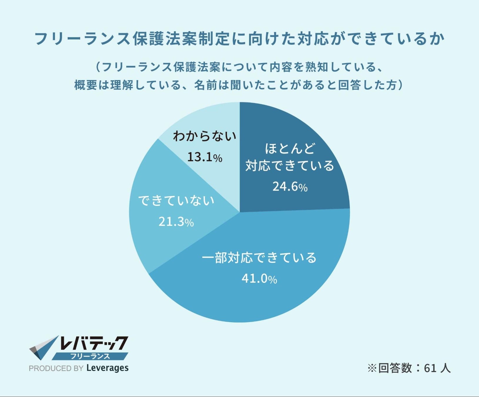 保護法制定に向けた対応に関しては、「一部対応できている(41.0%)」が最も多く、ついで「ほとんど対応できている(24.6%)」と続きます。