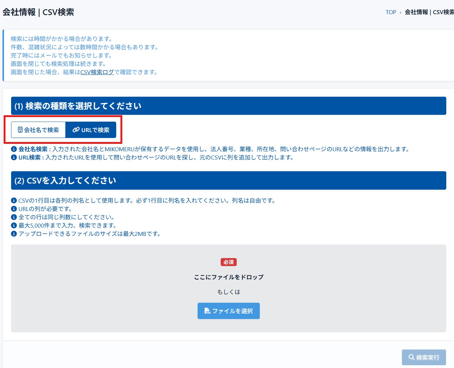CSVをアップロードするだけで、問い合わせフォームURL等の会社情報を自動取得する機能がさらに便利になりました。