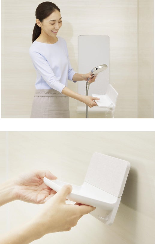 今年春には、LIXILからさまざまな機能を持つマグネットアイテムが新登場!収納棚のほかにも、シャワーフックやミラーなど、マグネットで好きな位置(※)に自由なコーディネートが可能です。そして、取り外してまる洗いができるので、多くの方のお悩みとなっている清掃面にも優れています。
