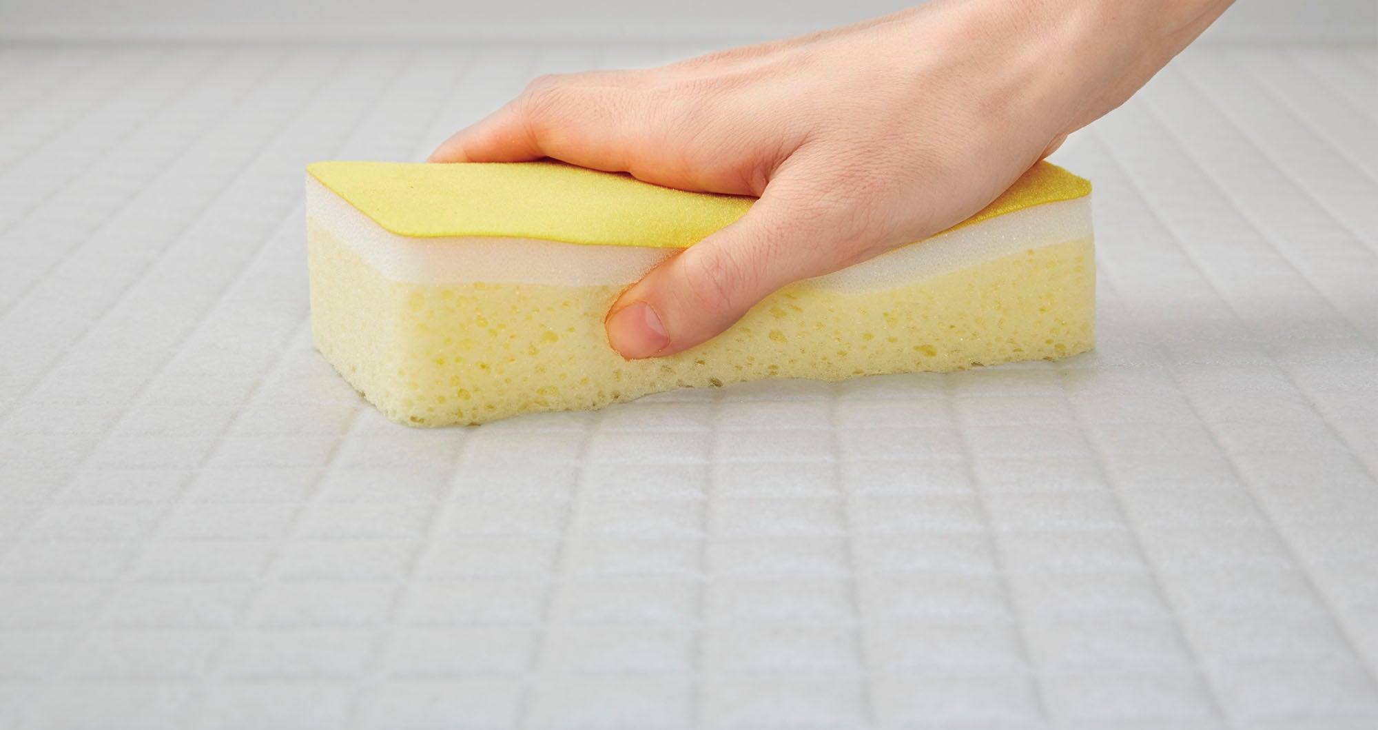 溝が浅くスポンジが奥まで届きやすい床面状になっています。また、特殊な表面処理で皮脂汚れが付きにくく、取れやすいので、お掃除がラクな床です。