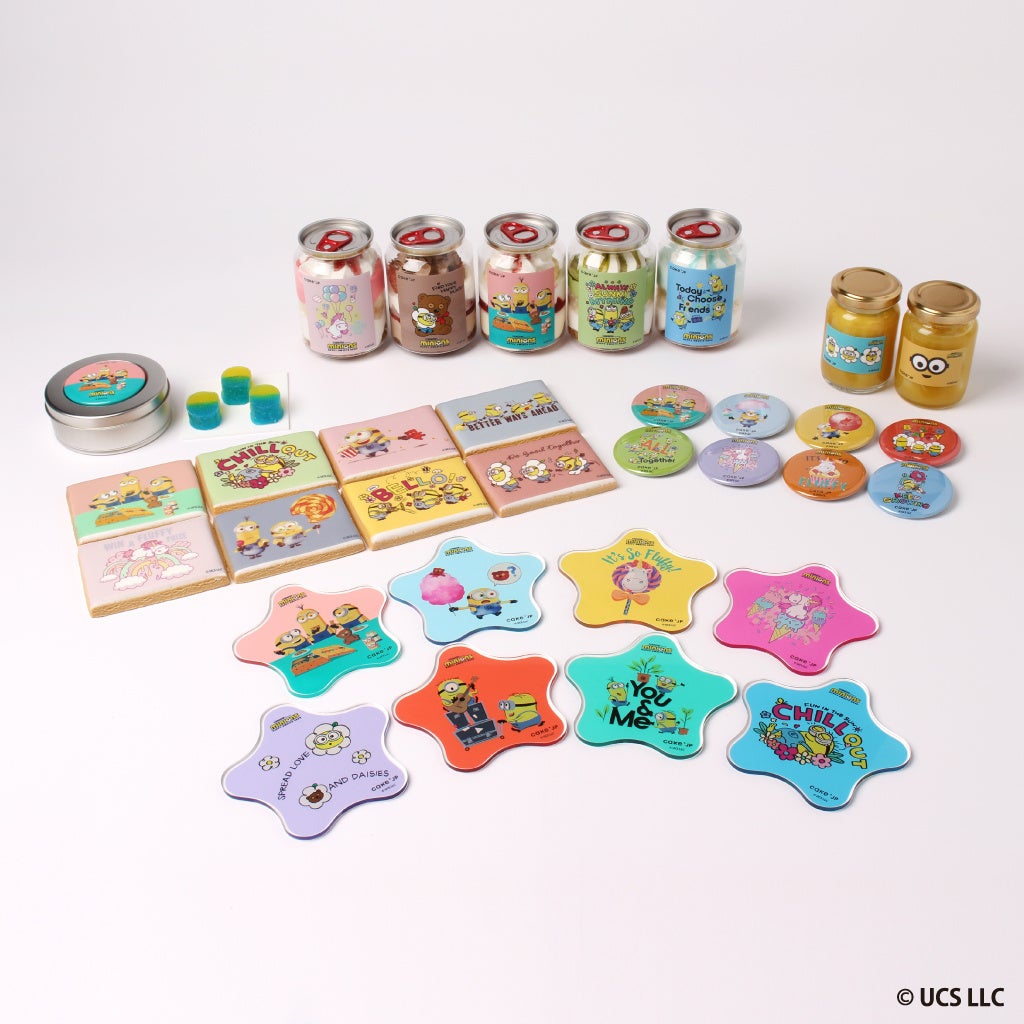 さらに、オリジナルグッズは、「ミニオン」のイラストが入った缶バッジやアクリルコースターなど、コレクター心がくすぐられるアイテムが登場します。