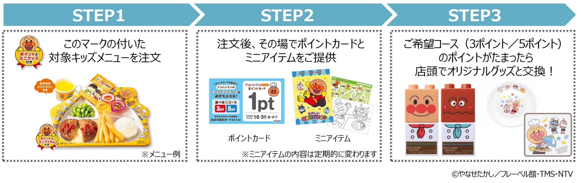 【すかいらーくグループ】7/1(火)~ キッズメニューでポイントカードを集めてアンパンマンの「ブロックラボⓇ」をもらおう!