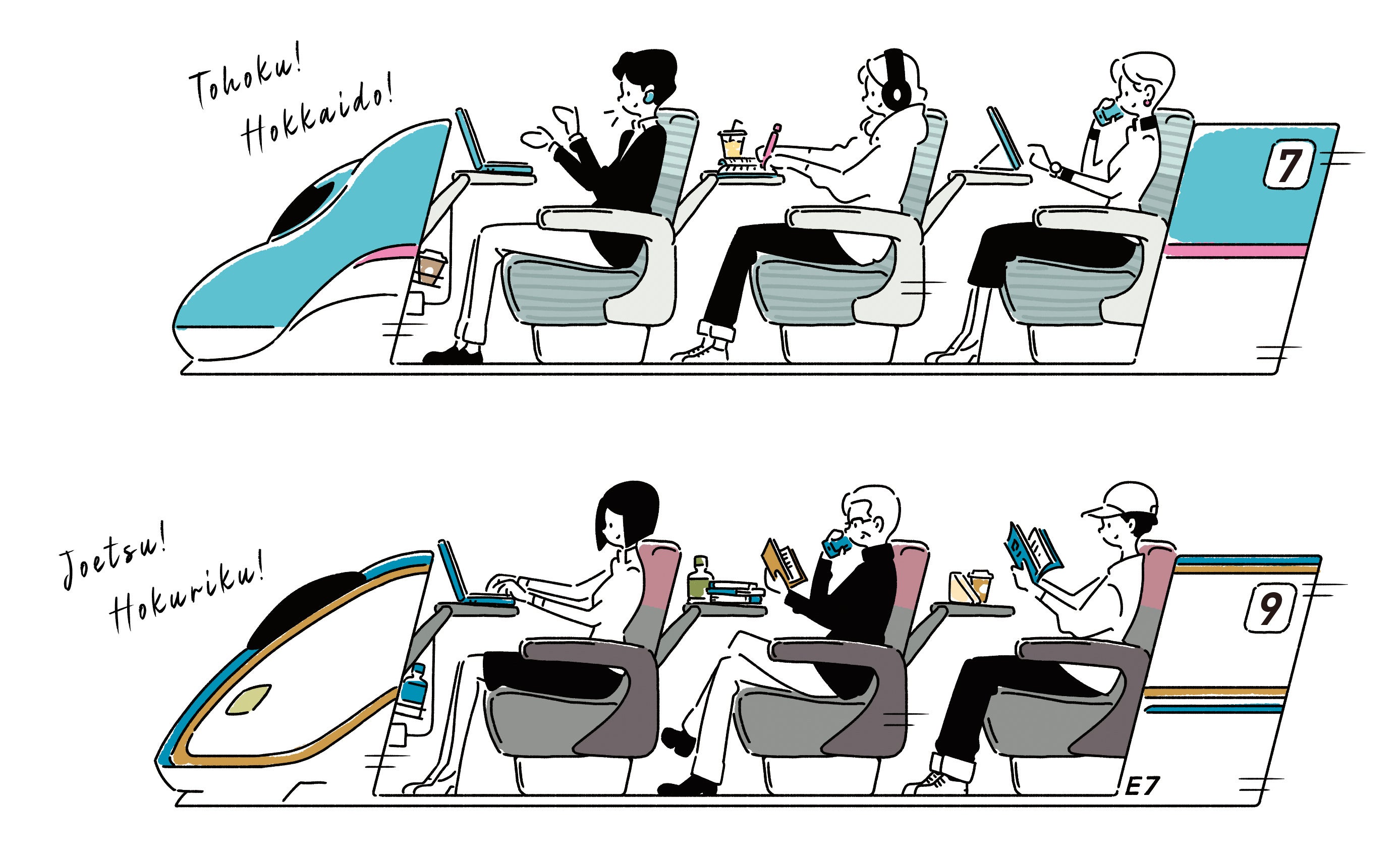 | 〇2021年11月22日からJR東日本、JR北海道、JR西日本が連携して、ワーク&スタディ優先車両として座席でWEB会議や通話が可能な“新幹線オフィス車両”を東北・北海道・上越・北陸新幹線の8号車でサービス提供しております。 〇”新幹線オフィス車両”は、2023年3月20日より、“TRAIN DESK”にリニューアルします。設定する列車全てで一般の普通車指定席と区別して購入いただけるようにし、ますます移動時間を”自分時間”として過ごしやすくなります。あわせて、設定号車を東北・北海道新幹線は7号車、上越・北陸新幹線は9号車に変更します。 〇今後も、新たなサービスを順次拡充し、“TRAIN DESK”のさらなる利便性向上を図るとともに、北海道・東日本・北陸各エリアの多様なワークスペースをつなぐことにより、時間と場所にとらわれない新たな分散型の“暮らし”の実現を推進していきます。 |