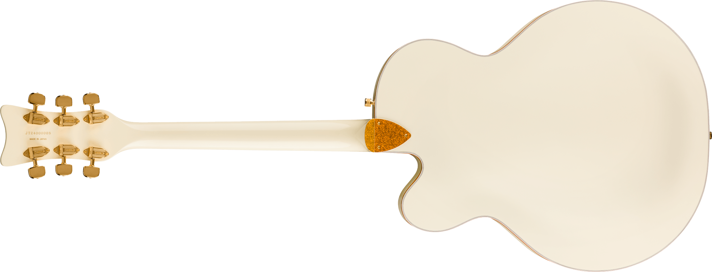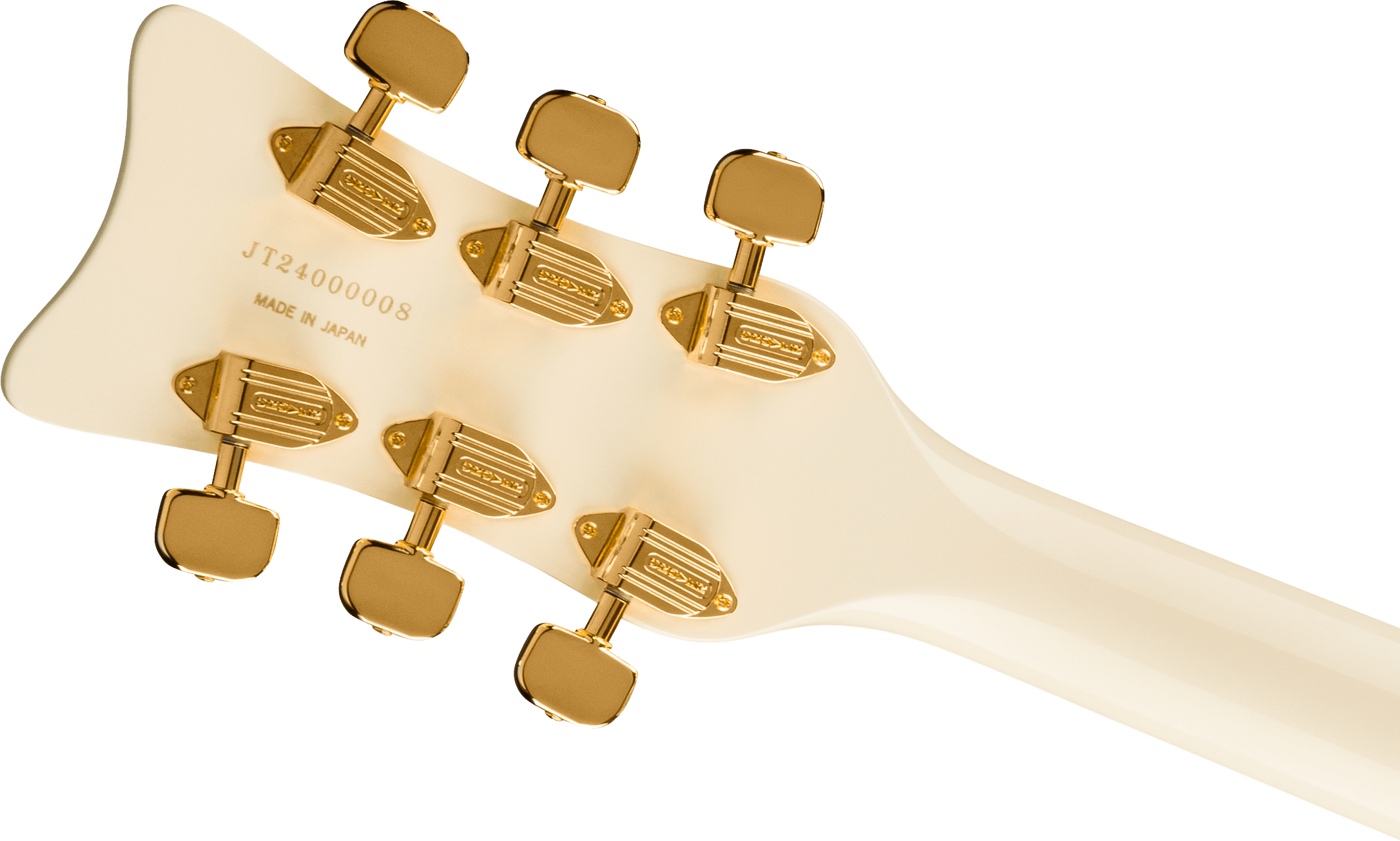 『Limited Edition G8424T Billy Duffy Signature Falcon』は、ミュージシャンやコレクターのニーズに応えるプレミアムな仕様を搭載しています。すべての製品にはビリーの直筆サインが記され、“8424”を飾ったメタルトラスロッドカバーが取り付けられています。また、Gretsch® Billy Duffyハードケースと、ケースキャンディーが付属します。17インチ幅/厚さ2.75インチのメイプルボディにはパラレルトーンバーを内蔵しており、25.5インチスケールのスタンダード“U”シェイプメイプルネックは快適な演奏性を提供します。一方、22本のヴィンテージスモールフレットとパーロイドワイドブロックインレイをあしらった12インチラジアスのエボニー指板によりスタイルと機能性を兼ね備えています。カスタムワウンドのBlack Top™ Filter’Tron™ハムバッカーは、ファンが愛する特徴的なサウンドを届けます。表現力豊かなピッチヴィブラートを実現するBigsby® B6GWテイルピースを装備しています。目を引くルックスを誇る本モデルは、ゴールドスパークルバインディングとゴールドハードウェアを採用したVintage Whiteで仕上げられています。