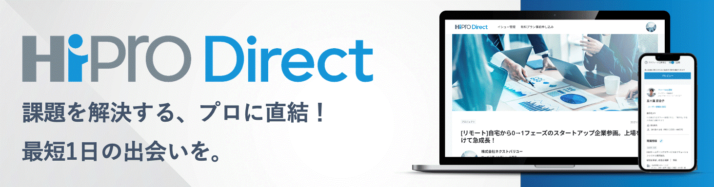 「HiPro Direct」は、企業と副業・フリーランス人材をつなぐマッチングプラットフォームサービスです。
