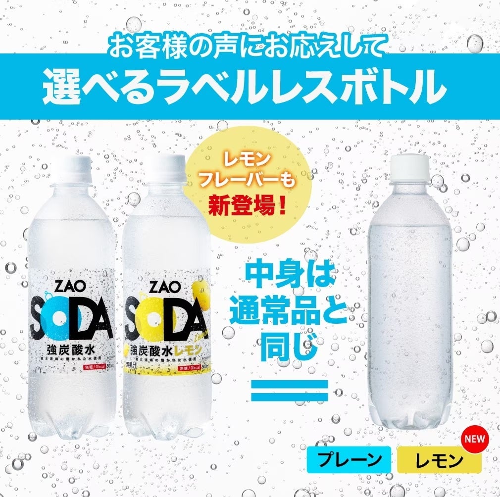 蔵王連峰山麓の地下水を使用した強炭酸水。ラベルを捨ている必要のないラベルレスボトルも登場!