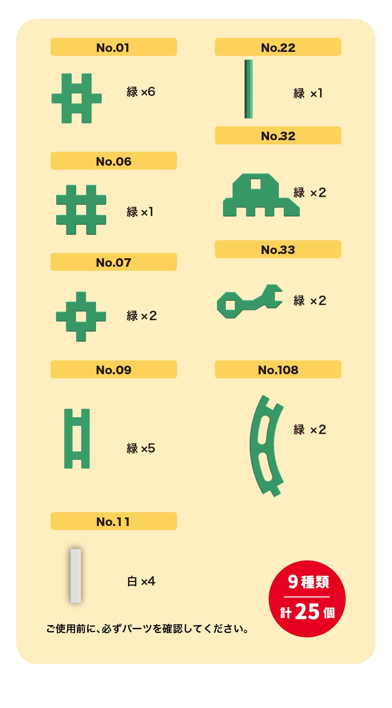 本商品は毎年開催している「ニューブロック作品コンテスト」に投稿いただいたユーザー作品の中から限られたパーツで作られた優れた作品を商品化いたしました。投稿いただいたメイン作品「わに」のほかにも組み替えることで「バッタ」「カンガルー」「プテラノドン」といった作品を作ることができます。作り方が記載された遊び方ガイド付き。