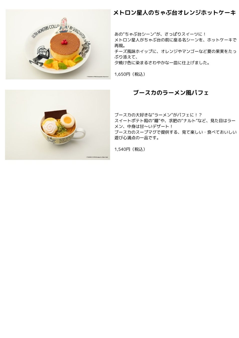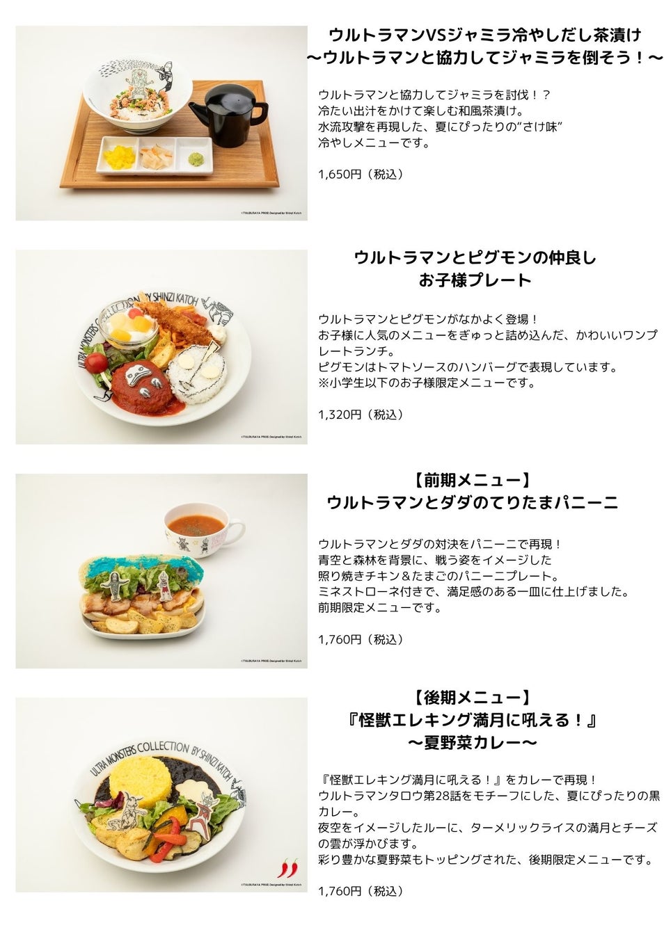 ウルトラヒーローズEXPO 2025 サマーフェスティバル 開催記念!2025年7月19日(土)~9月8日(月)、池袋PARCO「atari CAFE&DINING」にてウルトラマン コラボカフェが登場!今回のテーマは、人気イラストレーターShinzi Katohさんによるおしゃれで、ゆる~いウルトラマンの世界。ヒーローたちの“夏”が、やさしいイラストとおいしいごはんで彩られます。たとえば、「ウルトラマンVSジャミラ冷やしだし茶漬け〜ウルトラマンと協力してジャミラを倒そう!〜」はお皿の絵柄とお料理が絶妙にリンクして水流攻撃を再現していたり、ブースカが大好きなラーメンが実はパフェ!の「ブースカのラーメン風パフェ」など。