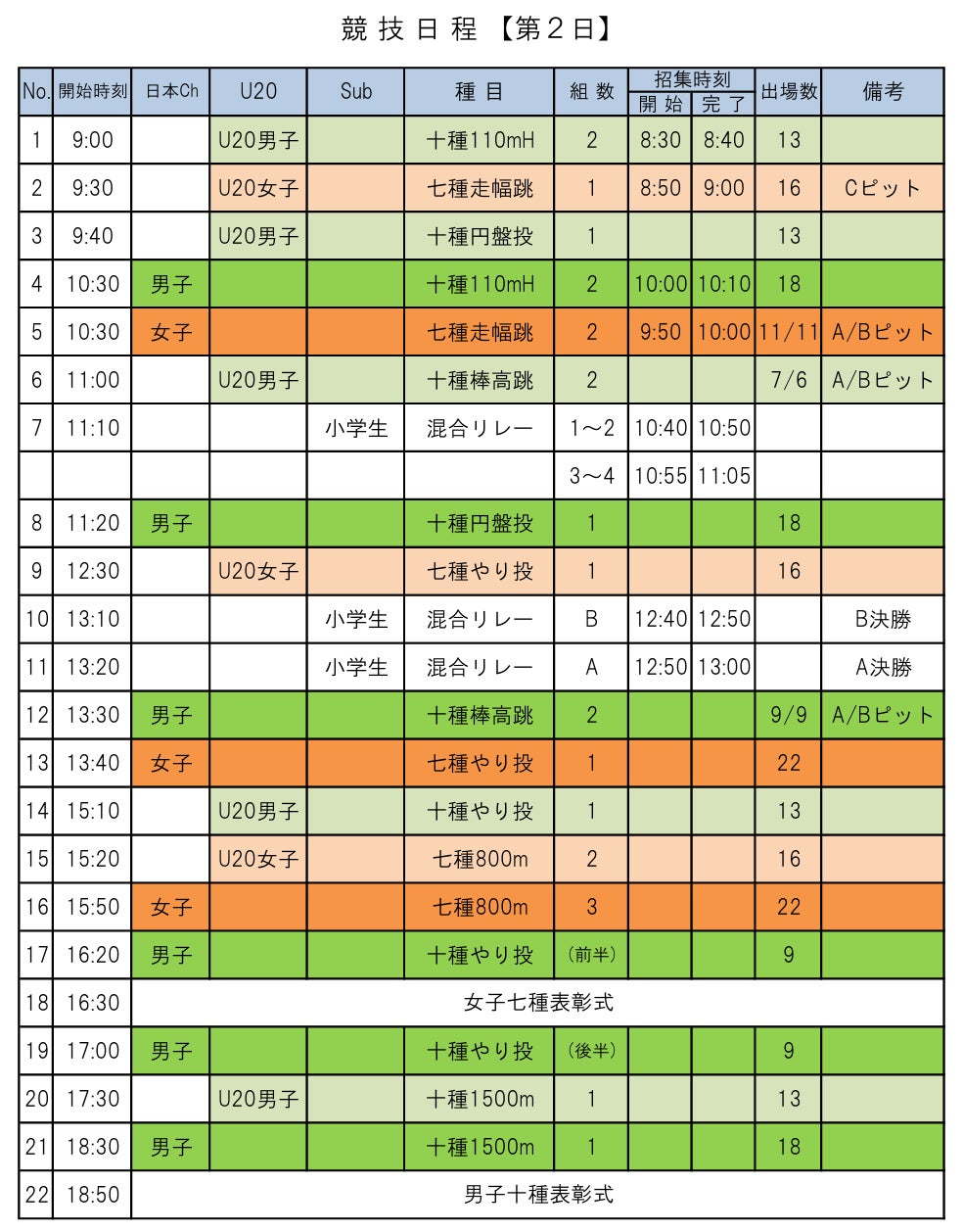 男子は2日間で十種目(1日目:100m、走幅跳、砲丸投、走高跳、400m、2日目:110mハードル、円盤投、棒高跳、やり投、1500m)、女子は七種目(1日目:100mハードル、走高跳、砲丸投、200m、2日目:走幅跳、やり投、800m)を行い、陸上競技のなかでも最も過酷な競技と言われ、その勝者は「キングオブアスリート」「クイーンオブアスリート」と呼ばれます。