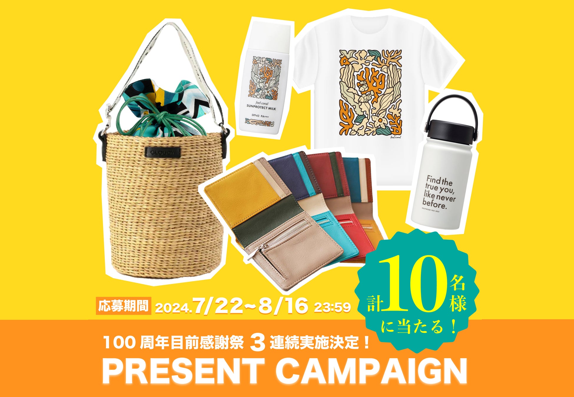 ハリウッド株式会社(本社:東京都港区六本木)は、まもなく100周年を迎えます。これもひとえに日頃よりご愛顧いただいているお客様のおかげでございます。日頃の感謝の気持ちをこめて、3連続プレゼントキャンペーンを実施いたします!