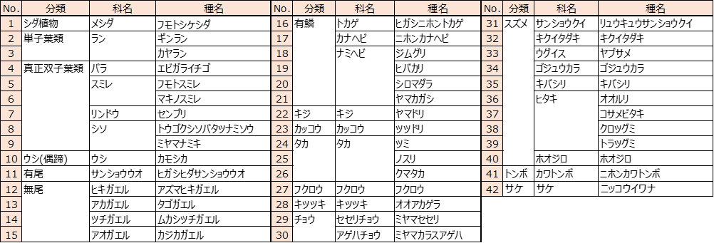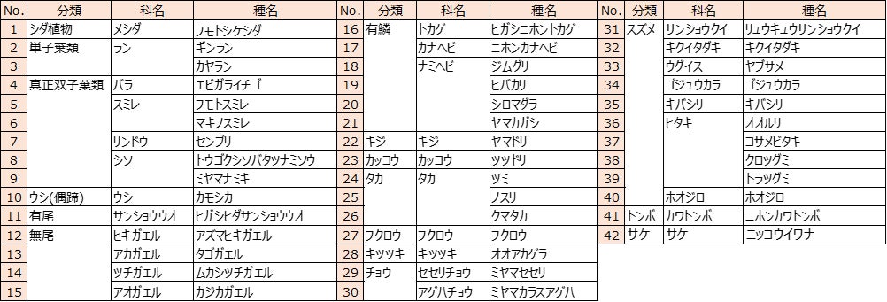 【ご参考】「つなぐ森」でこれまでに確認された重要種(全42種/2023年10月時点)