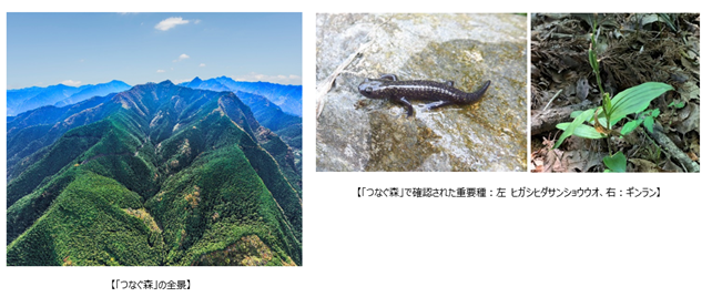 【本プレスリリースのポイント】 1. 当社グループは2030年までの重点課題(マテリアリティ)の1つに「生物多様性」を掲げており、 2022年より奥多摩町に「つなぐ森」を保有。森林施業(伐採、作業道作設)や生態系調査等を開始 2. 30by30に向けた国内の取組みとして環境省が推進する「自然共生サイト」に認定、 またSGEC森林管理認証(FM認証)及び国際相互認証制度PEFC認証も取得 3.「つなぐ森」の生態系調査では約42種類の重要種※が確認されており、 今後も東京都に所在する貴重な森の保全に取り組んでいく |