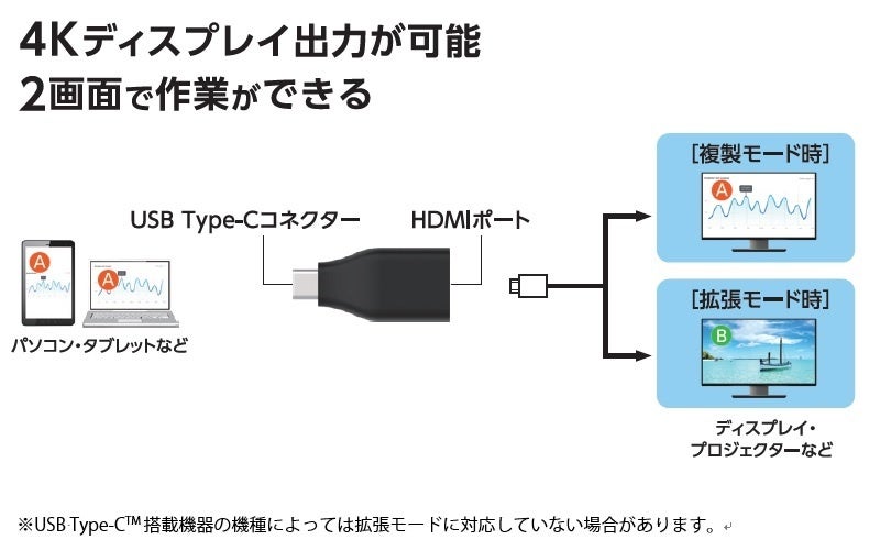 ※USB Type-C(USB-C)搭載機器の機種によっては拡張モードに対応していない場合があります。