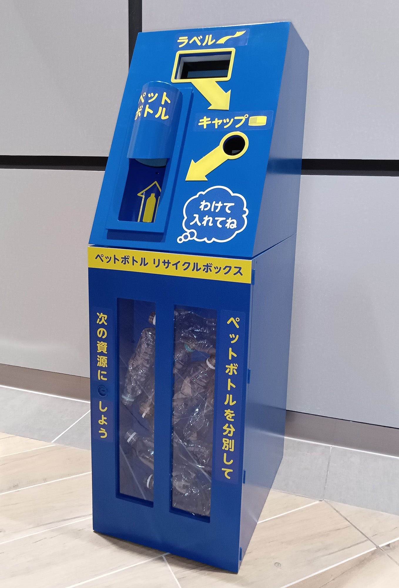 「ボトルtoボトル」水平リサイクルでは、ペットボトル・キャップ・ラベルが3分別されていると効率よくリサイクルすることができます。しかし、家庭ではきれいに3分別されて回収に出されている一方で、家庭外ではペットボトルの3分別が十分に進んでいないという現状※2があります。家庭外から集められる使用済みペットボトルも効率よく水平リサイクルできる資源にしていくために、リサイクルボックスのプロトタイプを開発し、家庭外において“3分別したくなる行動要素”を検証するための実証実験を行うこととなりました。