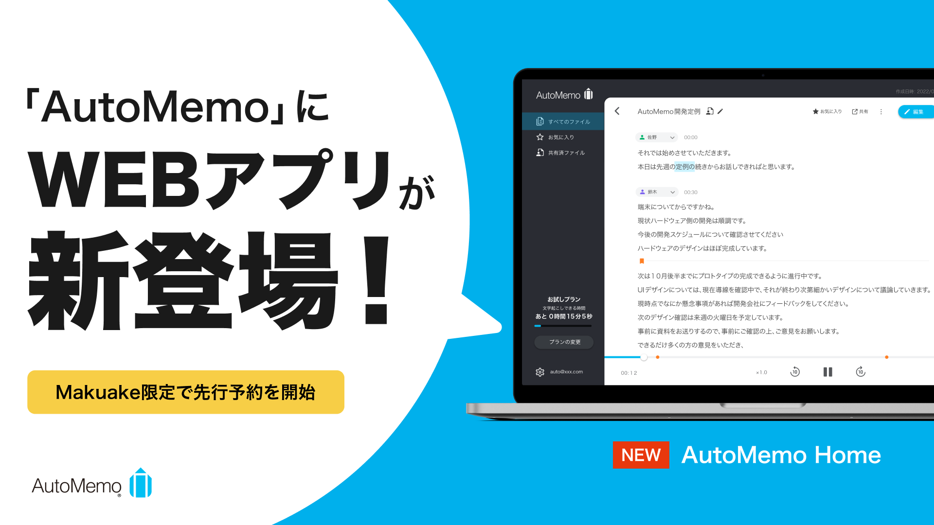 文字起こしAI AutoMemo(オートメモ)をより便利に 無料webアプリ「AutoMemo Home」6月β版リリース、2023年夏に本公開