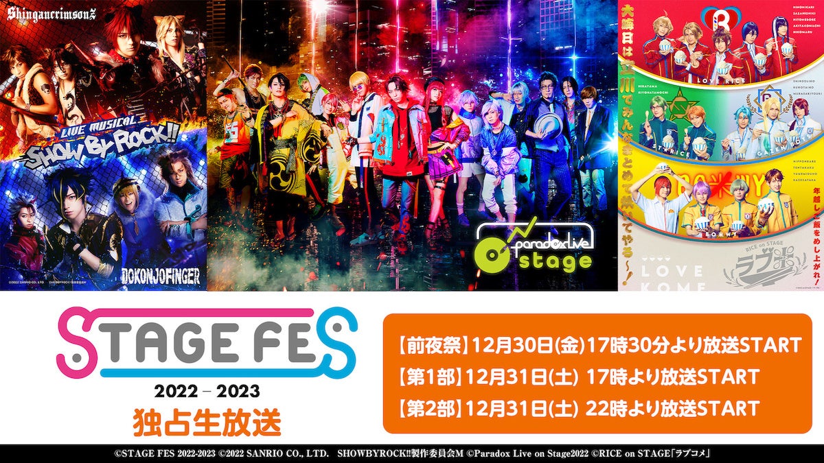 Live Musical「SHOW BY ROCK!!」、舞台「Paradox Live on Stage」、RICE on STAGE「ラブ米」の超豪華キャスト陣が作品の垣根を越えてお届けする夢のスペシャルLIVE&トークステージ「STAGE FES 2022-2023」が、大晦日12月31日にニコニコ生放送にて配信。