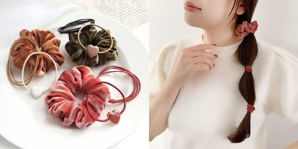 商品名:ベロアシュシュ&ハートヘアゴムセット