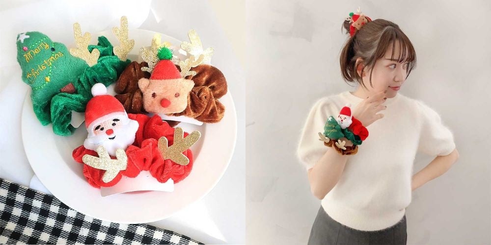 サンタクロースやツリーなど、クリスマスを彷彿とさせるモチーフのシュシュやヘアゴムです。