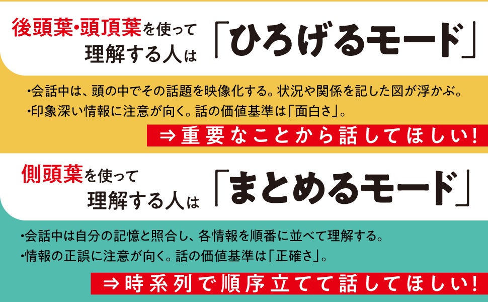 じつはこれらの話し方が有効なのは約半分の人たちに対してで、残りの人たちには伝わりやすくはなかったのです。その理由は脳の認知特性にあります。