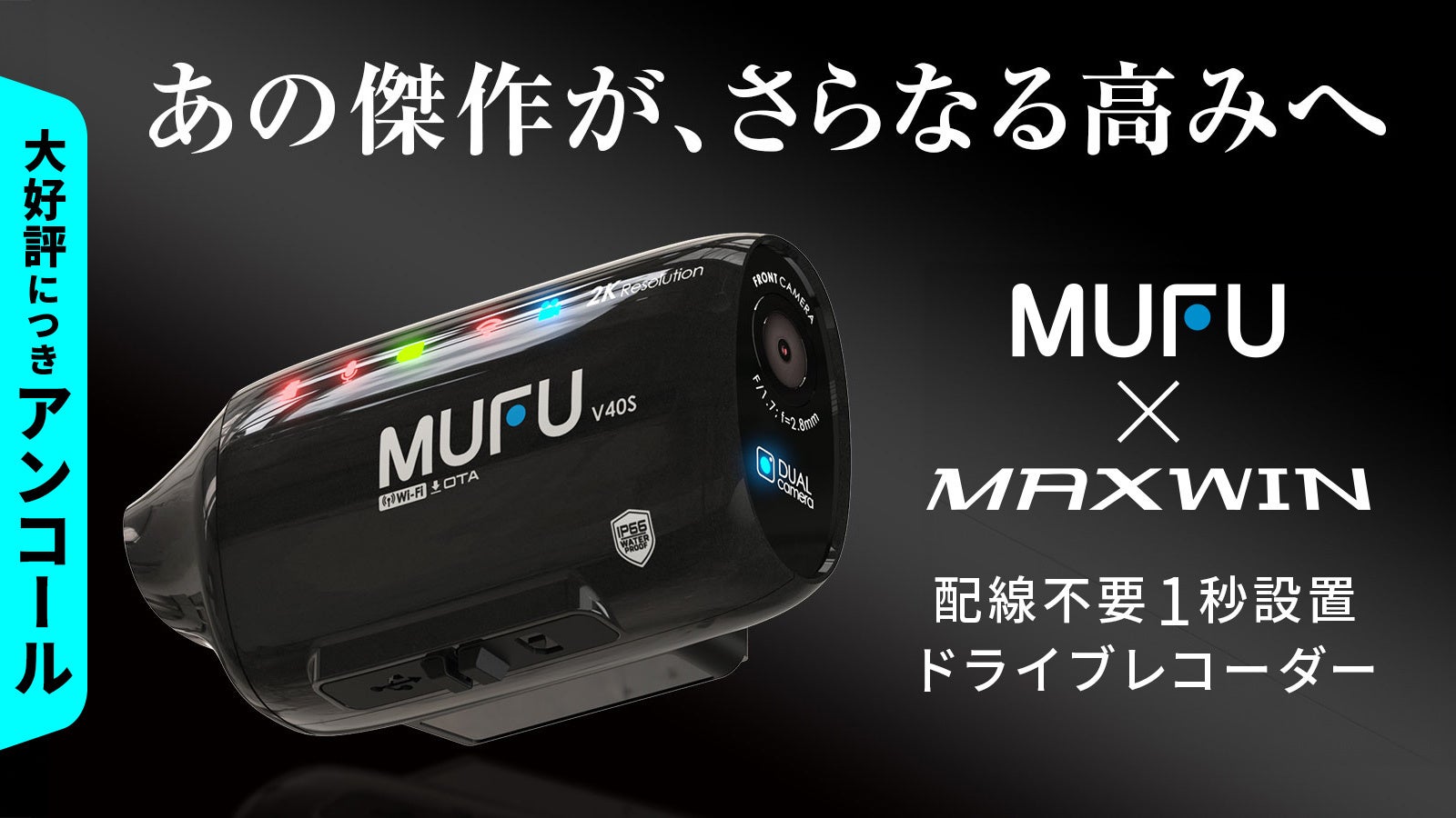 Makuakeで完売したMAXWIN×MUFU「MF-V40」が4月20日よりアンコール販売を始動!予約分も完売間近の超進化型ドラレコ、熱烈な要望に応え再登場。