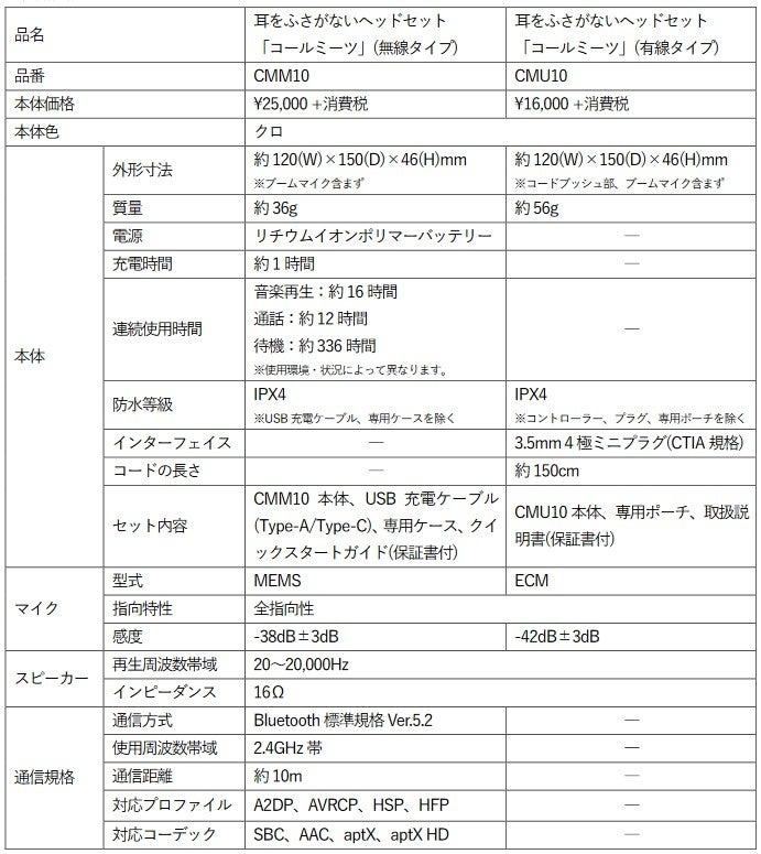 減した、耳をふさがないヘッドセット「コールミーツ」を発売します。