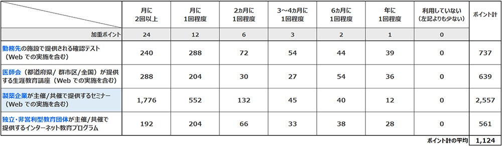 月2回以上など、「製薬企業が主催/共催で提供するセミナー(Webでの実施を含む)」の利用が最も多かった。