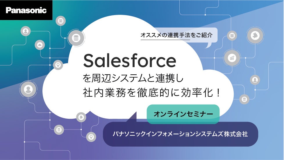パナソニック インフォメーションシステムズ株式会社は、2023年4月5日(水)から2023年6月21日(水)にかけSalesforceと周辺システムの連携にフォーカスしたオンラインセミナーを開催します。