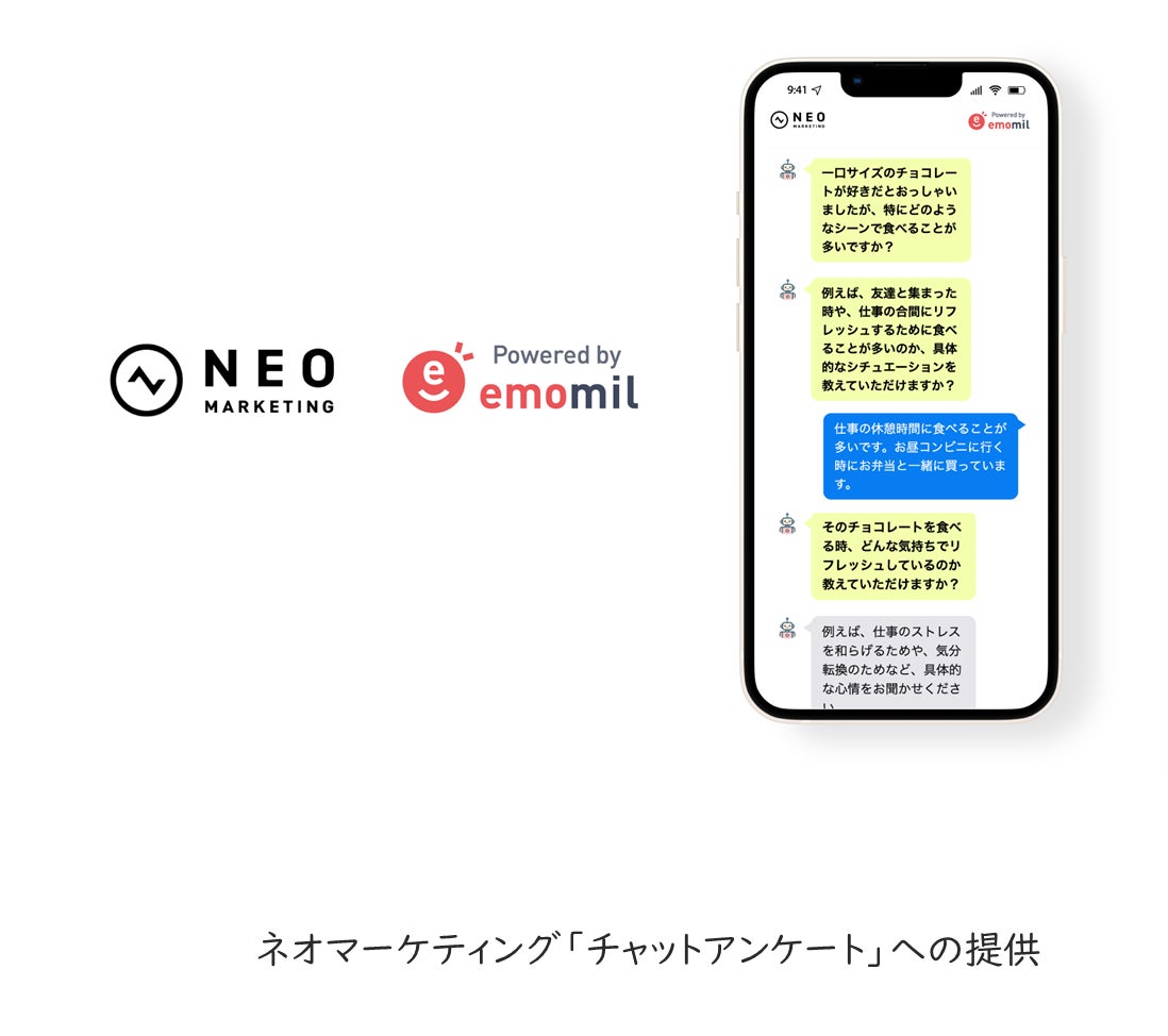 生活者を起点にしたマーケティング支援事業を提供する株式会社ネオマーケティング(東京都渋谷区、証券コード4196、代表取締役 橋本 光伸、以下ネオマーケティング)は、ヴィアゲート株式会社(東京都渋谷区、代表取締役 下崎 守朗、以下ヴィアゲート)との業務提携により、通常のアンケート形式にチャット形式を取り入れた「チャットアンケート」サービスをリリースしました。本サービスは、自由回答の質を飛躍的に向上させる新たなリサーチ手法として、定性的定量調査やコンセプト評価への応用を目指します。